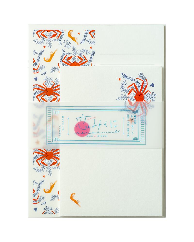 越前和紙に「甘えびと越前がに」をデザインしたレターセットです。