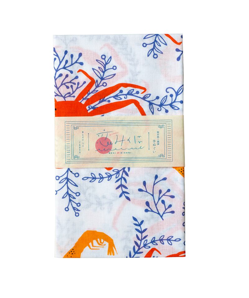 「甘えびと越前がに」をモチーフとした手ぬぐいです。